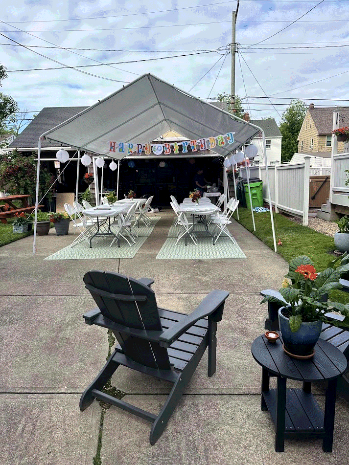 Grandma turns 60 and has a big bday bash! Mom and Teta Skin make a big flower pinata. Mom and Teta Skin try to run a ping pong tournament, but it's hard to find everyone in the bracket! Grandma and Grandpa have too many friends!