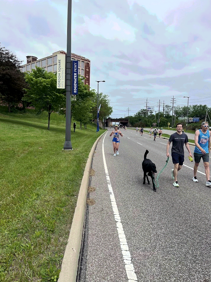 Mom, Dad, Grandpa, and Grandma watch Teta Skin run her first marathon in Cleveland. Mom runs with Teta Skin towards the end. Dad and Grandma electric scooter with Teta Skin close to the finish line. Unfortunately, Teta Skin was way too fast! Dad and Grandma could not catch her.