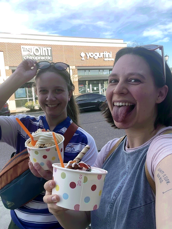 Mom goes back to Niagara falls with Maddie for her first trip to Canada! The border patrol agent asks them if their husbands are aware that they're going to Canada. Then they stay in Ellicottville and see the Lumineers in concert. They have fun at Denny's at like 2am after the concert. Mom feels large and her back hurts. She doesn't climb the spiral staircase, and she brings her own chair and towel to the concert. Mom gets extra looks while walking to the concert since she is so strong but still clearly pregnant.