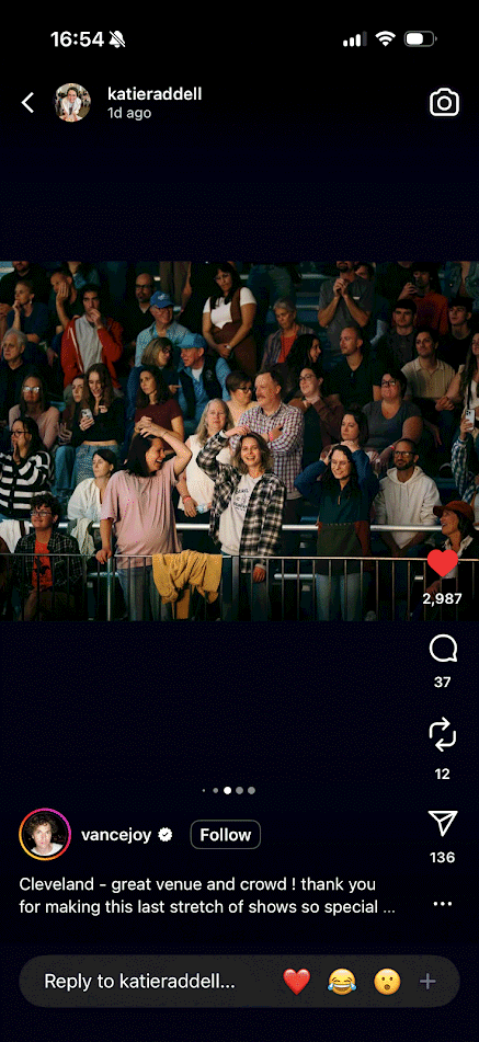 Mom sees Vance Joy in concert with Katie, Teta Skin, and Grandma and her friends. They sit in the accessibility seating since Mom's back is still a problem. Vance Joy high fives them many times and a picture of the group gets posted to Vance Joy's Instagram. They feel Instagram famous !