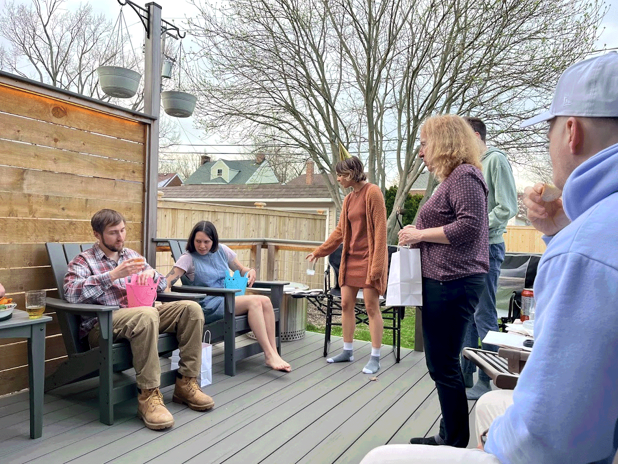 Mom and Dad have a big party at our house - a combined baby shower, birthday party, and housewarming! It's a big party with about 100 people. Mom turns 28 years old. Sofia, Renatto, Ryan the Jew, Grammy, Uncle Ryan, Uncle Matt, and Aunt Kelly are visiting. Sofia doesn't like that mom curses and listens to rated R music like Charli XCX Guess.